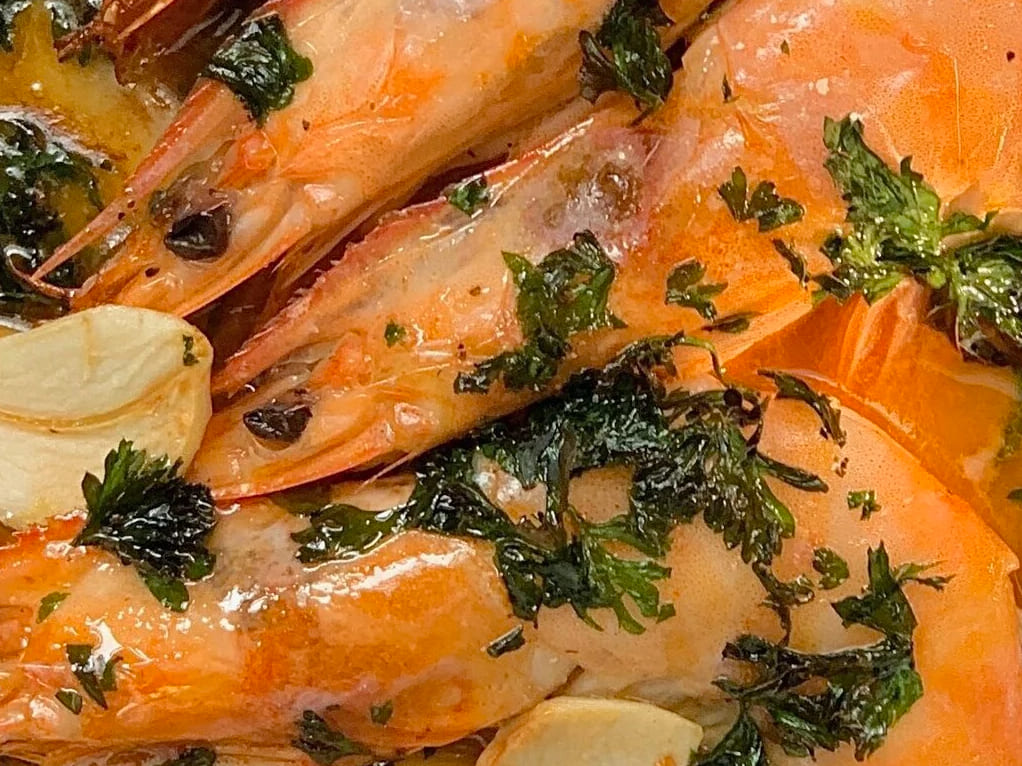 - Coloque os camarões num tabuleiro largo, sem os sobrepor demasiado.