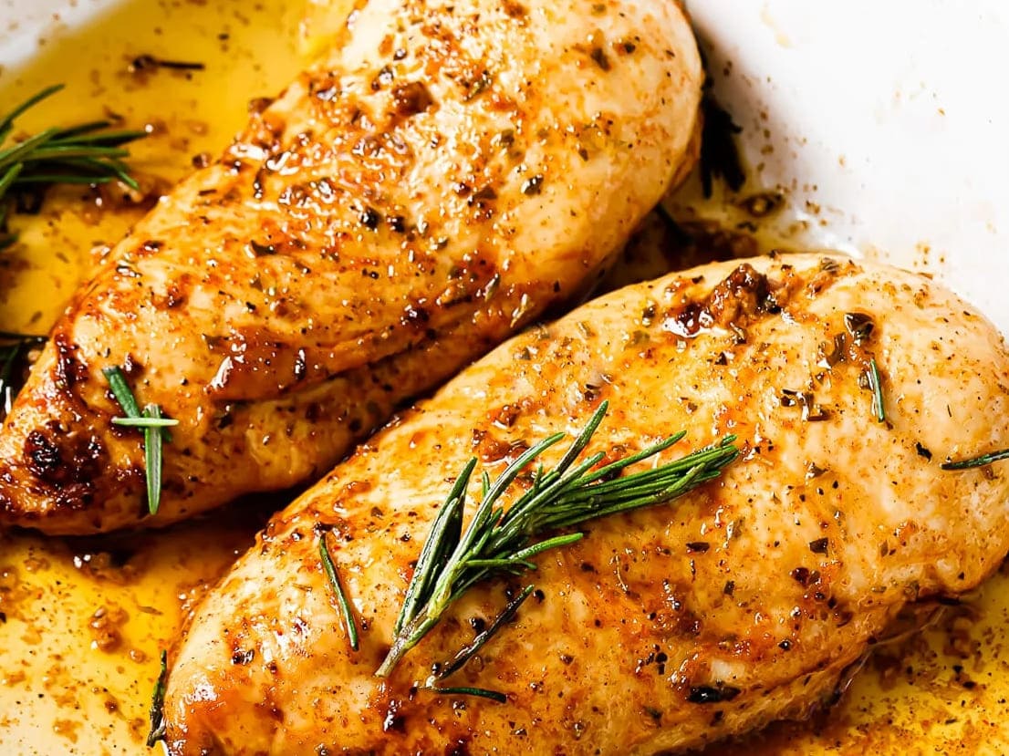 - Coloque o frango e a marinada numa assadeira com o alecrim e leve ao forno por 60 minutos. Vá regando com o molho.