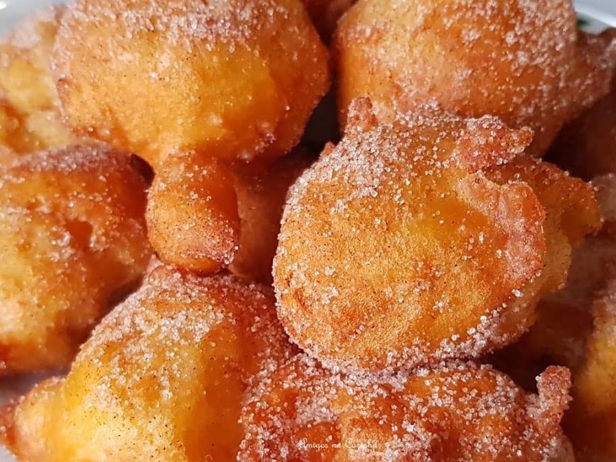 Misture o açúcar com a canela e passe os sonhos ainda quentes pela mistura.